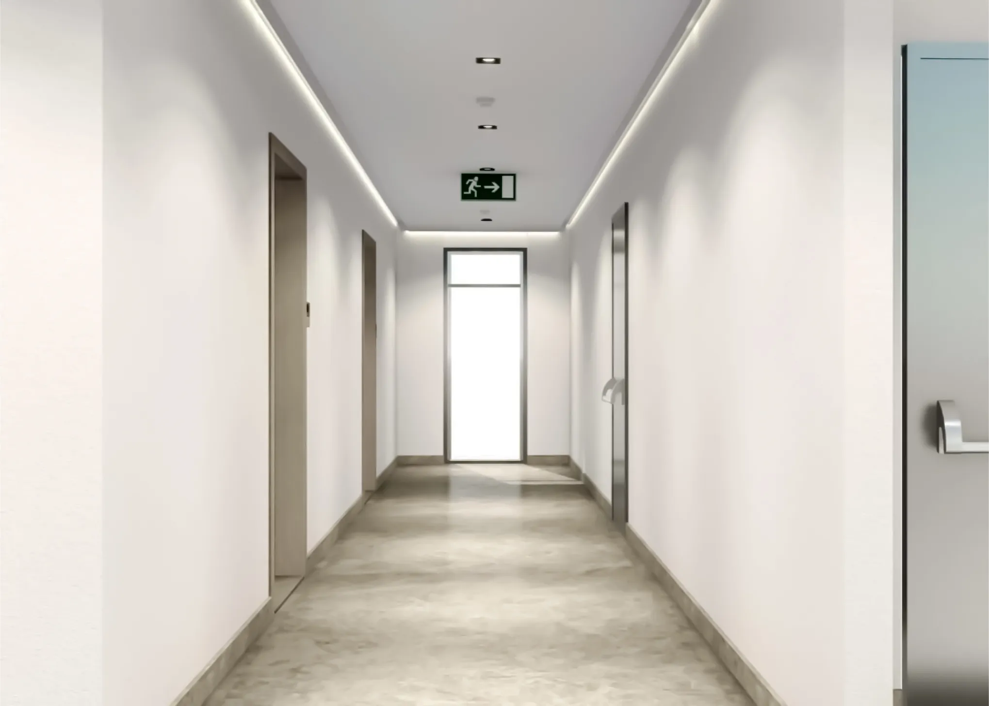 The building is equipped with a modern, automated fire protection system.